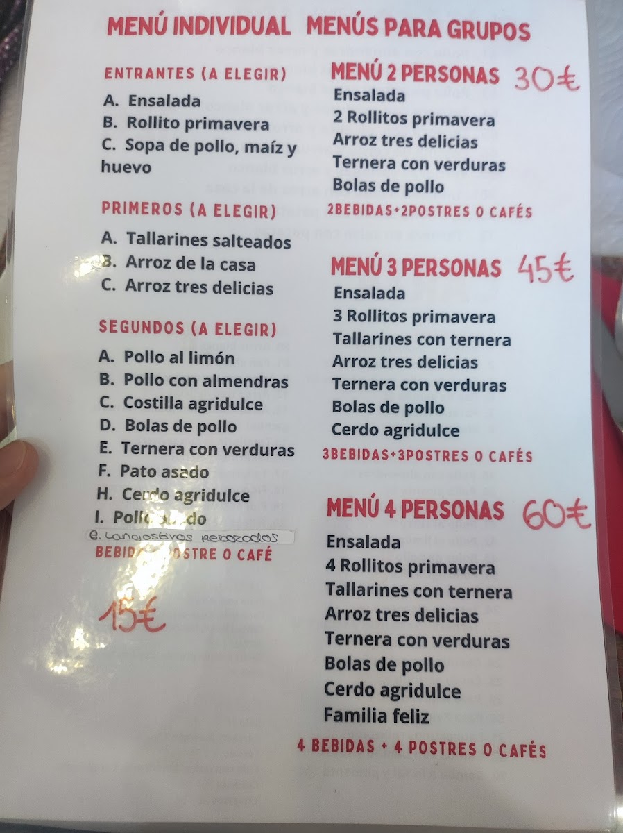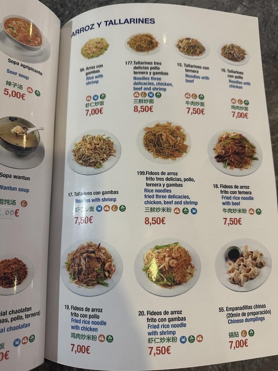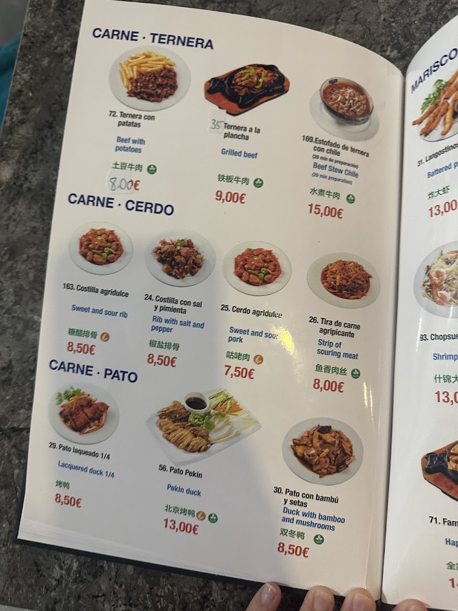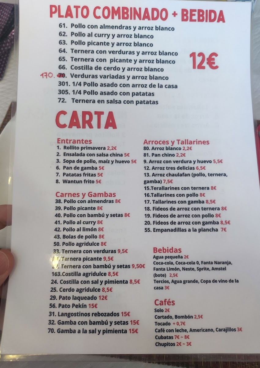 Restaurante Chang Fu S.L. in Valencia offers an authentic Chinese dining experience with a rich menu featuring bold flavors and fresh ingredients. The highlight lies in their diverse noodle and rice dishes, such as tallarines con ternera and fideos chinos con gambas, blending tender meats and seafood with perfectly cooked noodles. Pork lovers will delight in the crispy costillas agridulce and the spicy tira de carne agripicante, each bursting with traditional seasoning.